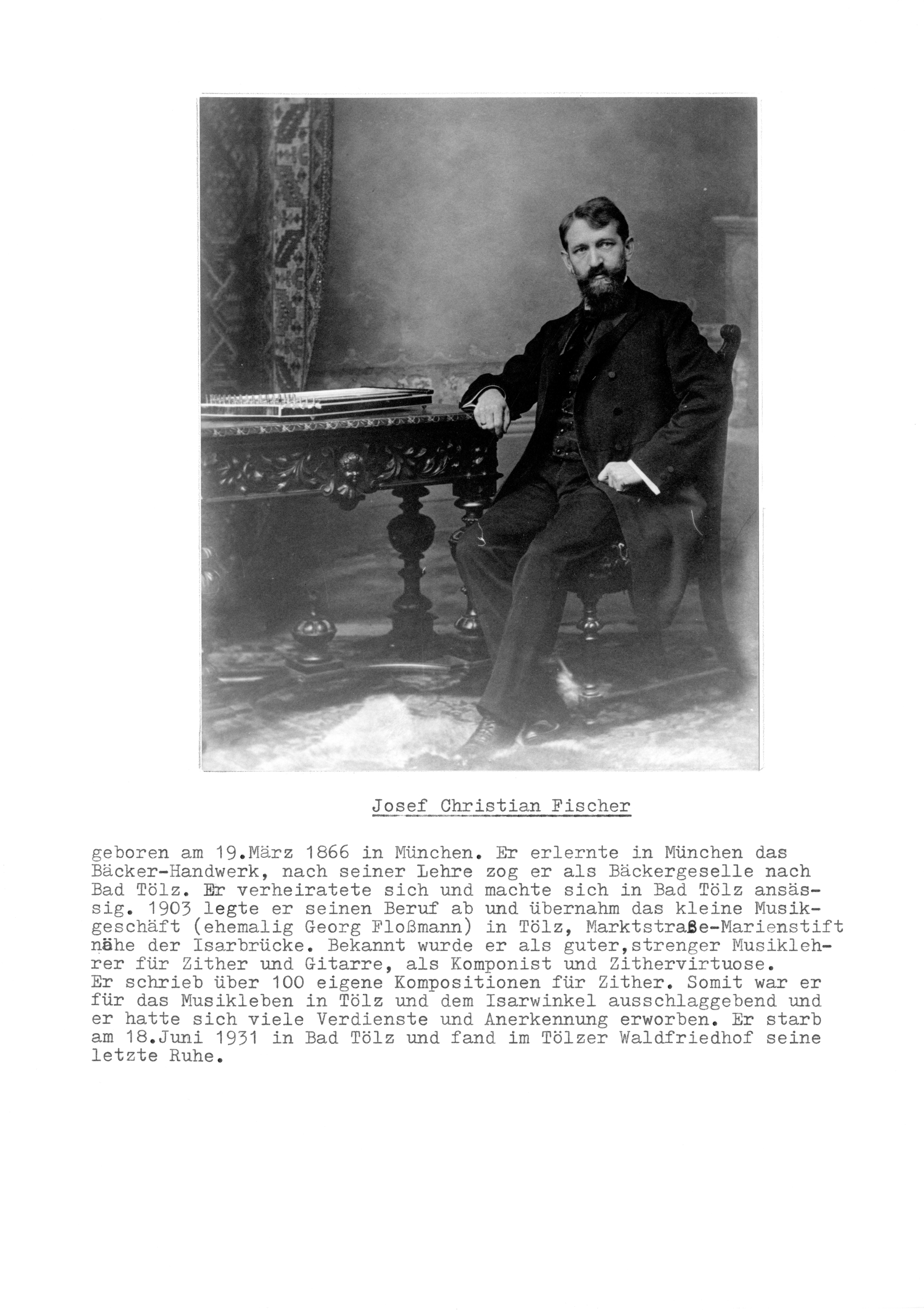 - Kurzbiographie über den Tölzer Josef Christian Fischer von Fritz Stang